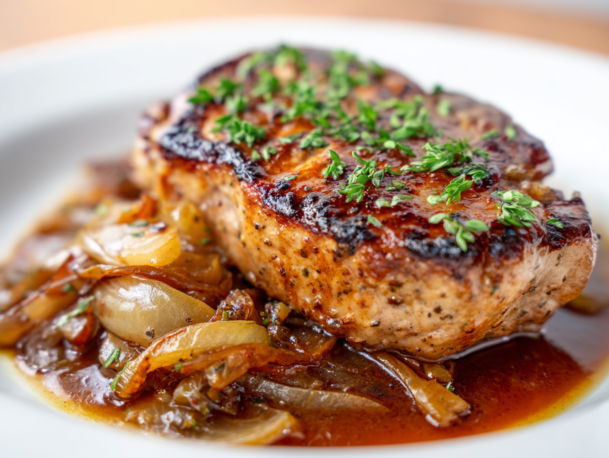 Apple Cider Pork Chops with Caramelized Onions